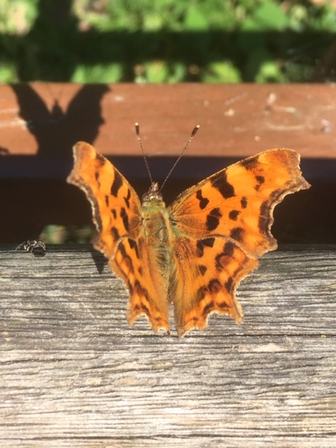 Comma butterfly, wings open.